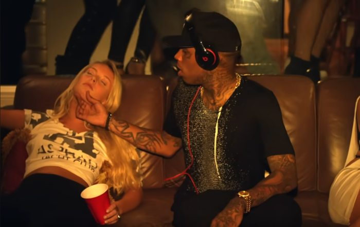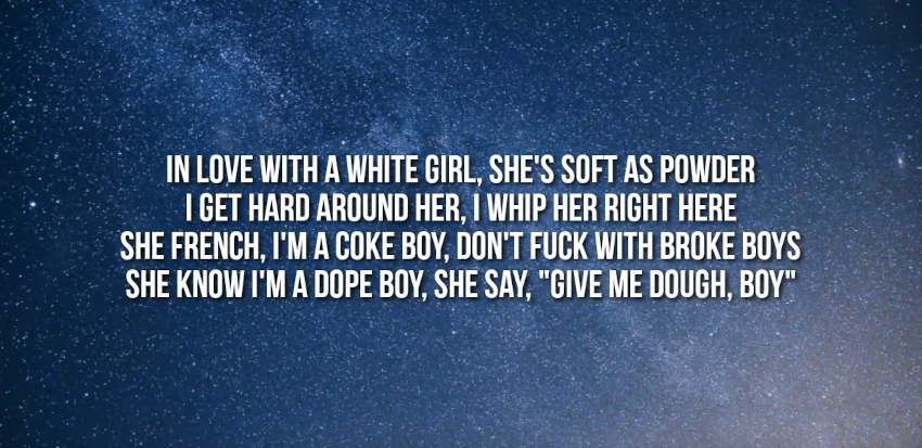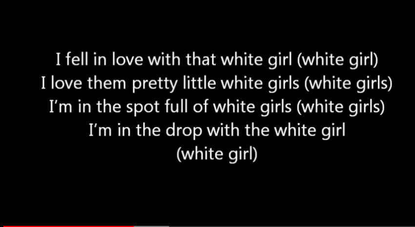 It is worth mentioning here that due to widespread promotion of race-mixing between White females and Black males on television and all of public life as demonstrated in other previous articles, this has become a theme in Black “gangsta communities” who consider White women as sexual objects but also symbols of status and achievement, and depict them in corresponding scenarios in many of their songs.