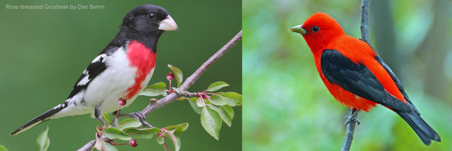 Rose-breasted Grosbeak (left) - Scarlet Tanager (right)